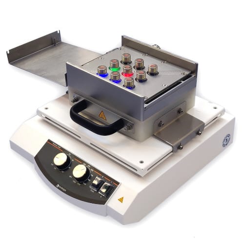El PX9 es un equipo de cribado fotoquímico multi-vial único e innovador, que nos permite determinar de modo rápido y sencillo la mejor longitud de onda para nuestro proceso fotoquímico o comparar distintas condiciones de reacción.
